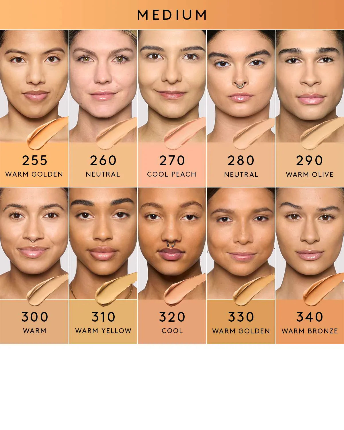 SHADES 105, 110, 130, 140, 145, 150, 160, 170,180, 185, 190, 200, 210, 220, 230, 235, 240, 250, 260, 270, 280, 290, 300, 320, 330, 340, 345, 350, 360, 370, 385, 390, 400, 410, 420, 430, 440, 445, 450, 460, 470, 480, 490, 495, & 498: AQUA/WATER/EAU, HYDROGENATED DIDECENE, HYDROGENATED POLYISOBUTENE, DISTEARDIMONIUM HECTORITE, TRIMETHYLSILOXYSILICATE, CETYL PEG/PPG-10/1 DIMETHICONE, GLYCERIN, NYLON-12, DIMETHICONE, METHICONE, SODIUM CHLORIDE, ACRYLATES/POLYTRIMETHYLSILOXYMETHACRYLATE COPOLYMER, POLYMETHYLSILSESQUIOXANE, HYDROGENATED STYRENE/ISOPRENE COPOLYMER, HYDROXYACETOPHENONE, LAURYL PEG-8 DIMETHICONE, HDI/TRIMETHYLOL HEXYLLACTONE CROSSPOLYMER, 1,2-HEXANEDIOL, CAPRYLYL GLYCOL, TOCOPHERYL ACETATE, TRISODIUM ETHYLENEDIAMINE DISUCCINATE, TALC, LAUROYL LYSINE, COMBRETUM FRUTICOSUM FLOWER NECTAR, ALCOHOL, BUTYLENE GLYCOL, PENTAERYTHRITYL TETRA-DI-T-BUTYL HYDROXYHYDROCINNAMATE, CENTELLA ASIATICA LEAF EXTRACT, CAMELLIA SINENSIS LEAF EXTRACT. MAY CONTAIN/PEUT CONTENIR (+/-): TITANIUM DIOXIDE (CI 77891), IRON OXIDES (CI 77491, CI 77492, CI 77499).