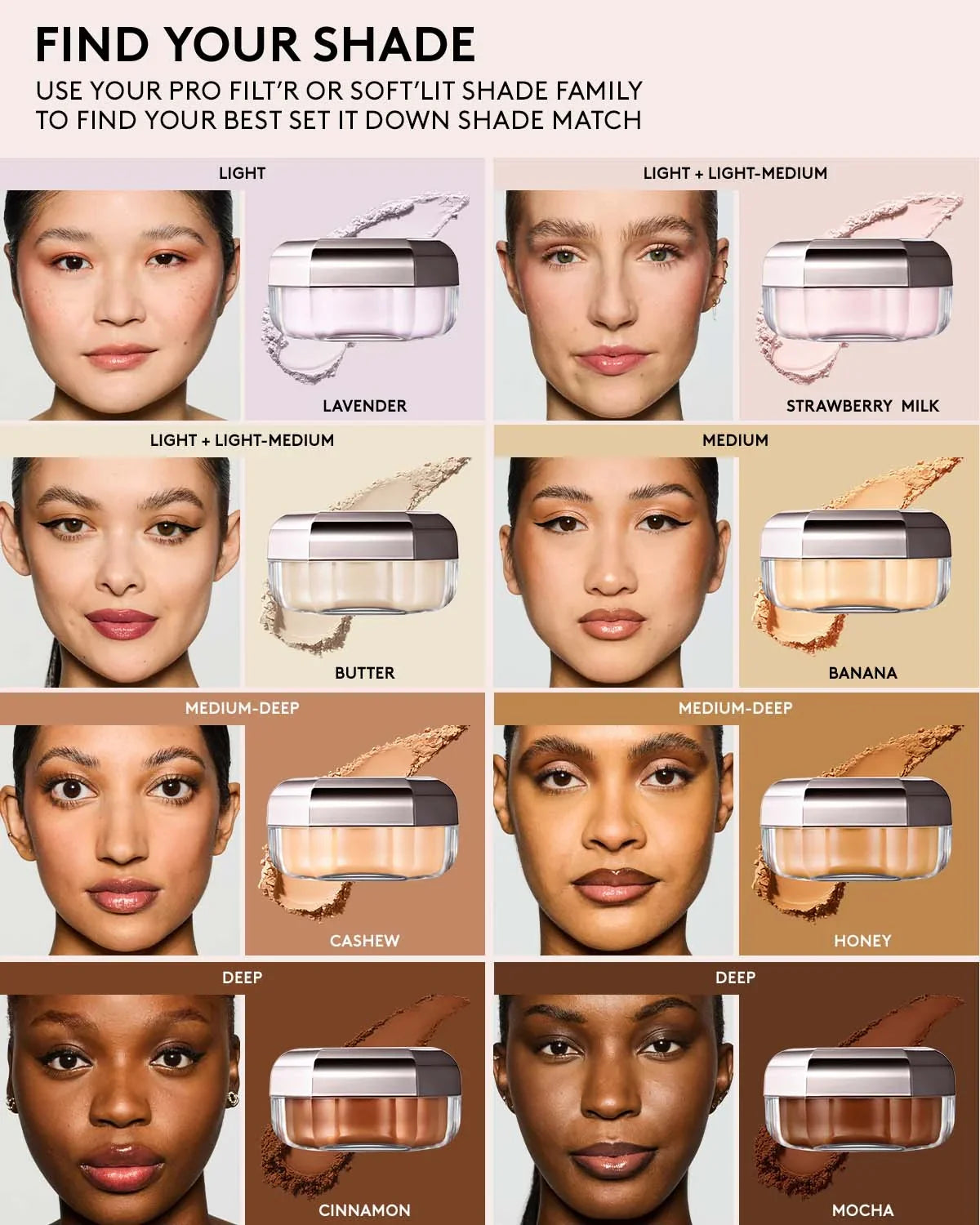 Shoutout to the superfine powder that stands up to anything. This lightweight, waterproof finisher extends your makeup while defending against humidity and sweat. The high-performance ingredient-packed formula has Hyaluronic Acid + features a blend of soft focus and mattifying powders to blur the appearance of pores—plus, Chia Seed Extract to help with all-day shine control. Its non-cakey, smooth-texture formula looks and feels undetectable on skin.