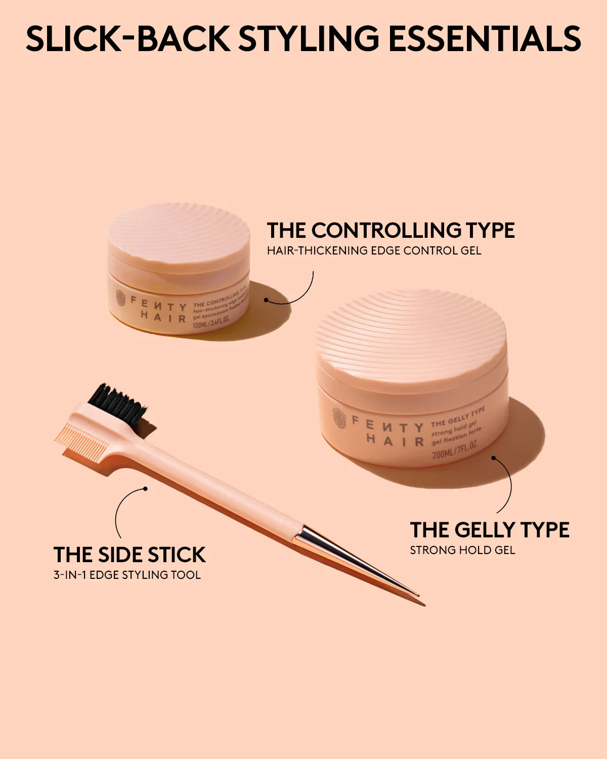 Get a snatched slick-back pony and laid edges using The Gelly Type Strong Hold Gel, The Controlling Type Edge Gel + The Side Stick 3-in-1 Edge Stick.