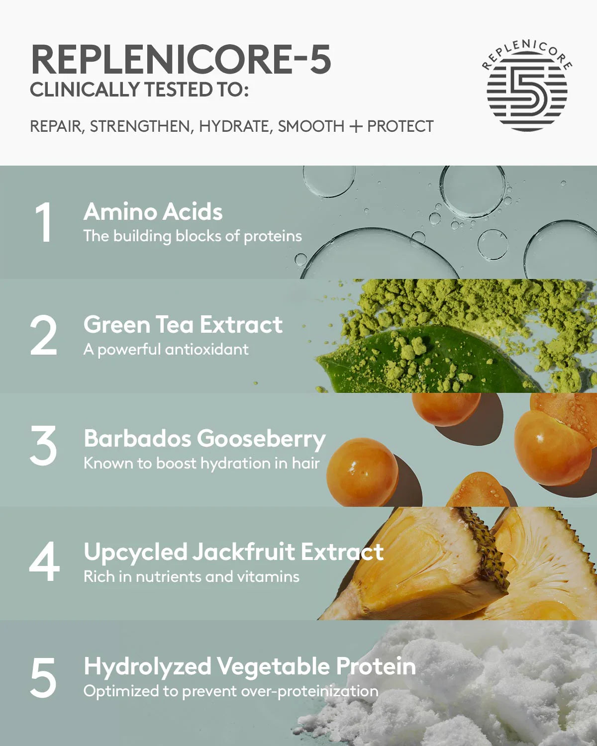 Cut through the buildup with a clarifying shampoo that won’t cloud your judgement. This gentle, color-safe clarifying shampoo gets to the root of it all, easily removing product buildup, excess oil and dirt without stripping your hair. The Clear Thinker helps provide a clean slate for weightless, bouncy styles. Infused with naturally derived Salicylic Acid and fruit-derived Pectins. And it only makes sense that we included our proprietary Replenicore-5 complex to repair splits ends and reduce breakage. Clear your head and start fresh.
