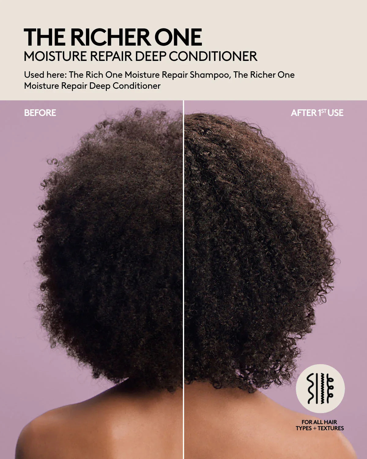 Make sure The Richer One Moisture Repair Deep Conditioner is evenly distributed throughout the hair before rinsing out.