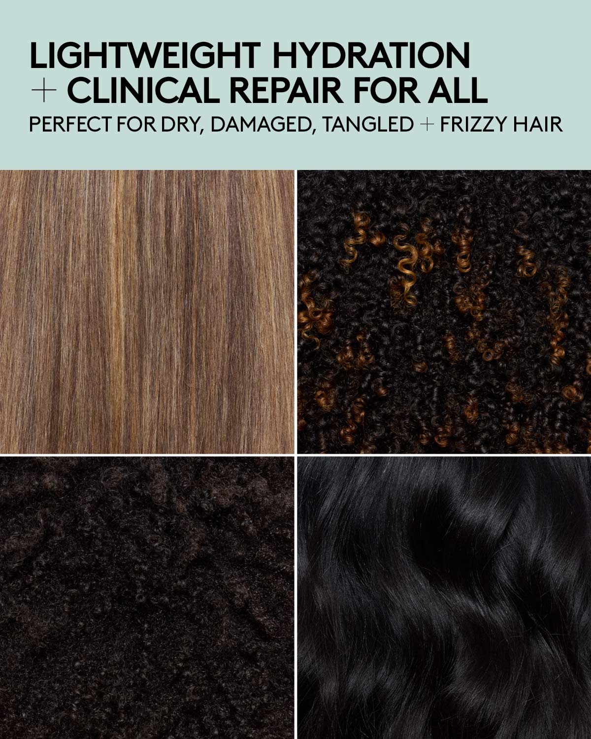 This do-it-all, reparative leave-in comes to your aid with the quickness. Made with multi-molecular weight Hyaluronic Acid, it serves up lightweight, all-day hydration, instantly quenching dry, thirsty hair. A true multitasker, this MVP protects against heat from blow dryers + diffusers and works on dry + wet hair—smoothing frizz, softening, detangling and refreshing strands. And of course, our Replenicore-5 complex repairs split ends and reduces breakage to get you off the sidelines and back in the game.