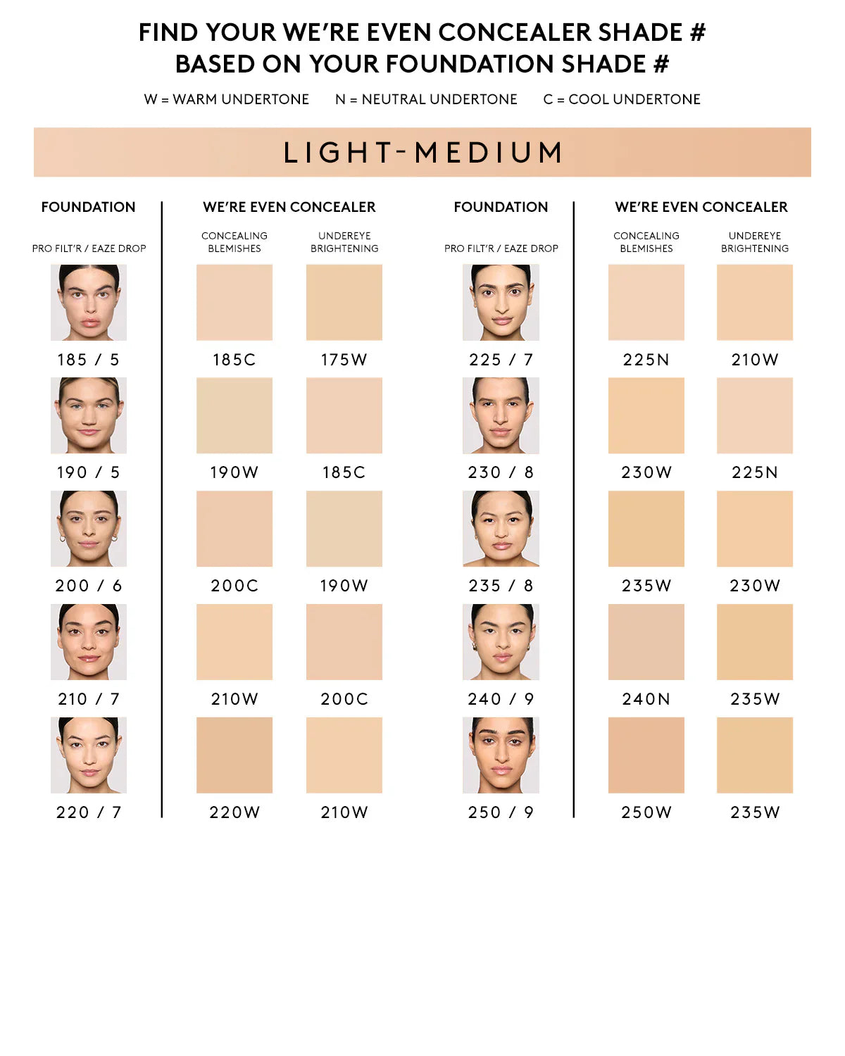 Do less, but get more with We’re Even Hydrating Longwear Concealer—the ultimate makeup-meets-skincare hack. It melts into skin, instantly evening, brightening and hiding dark circles + puffiness for up to 12 hours. Available in 50 buildable medium coverage shades with a second-skin finish.
